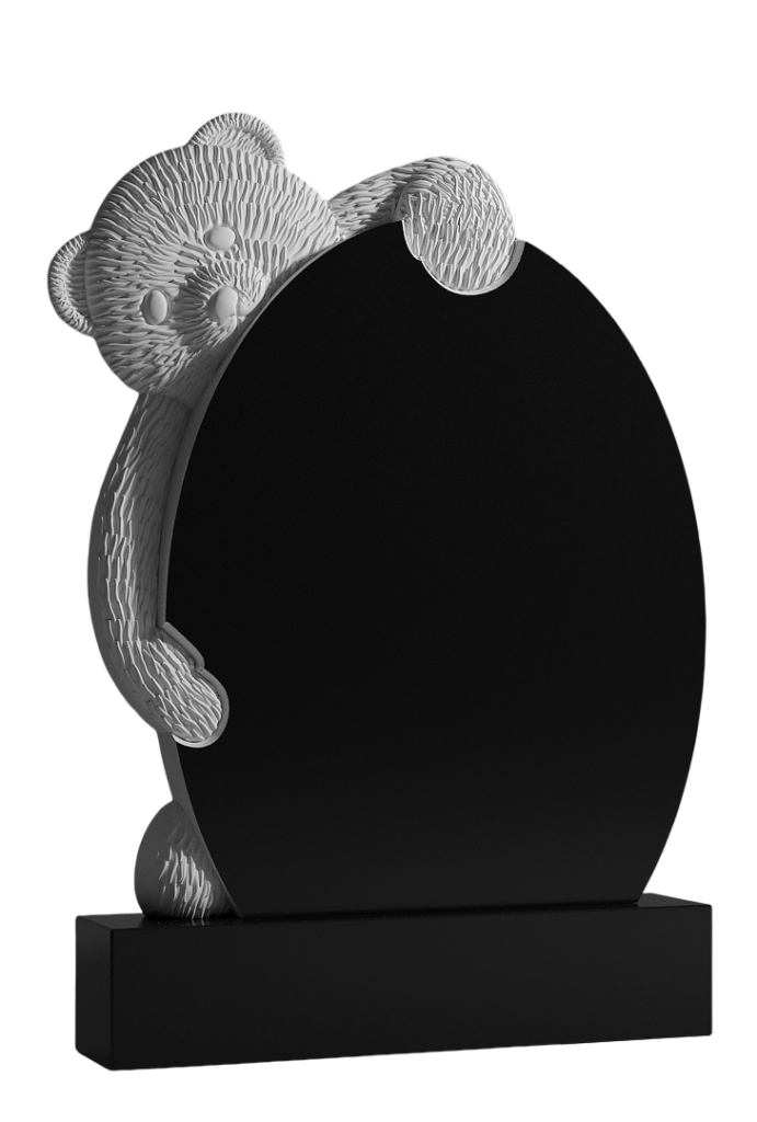 Этот памятник украшен детализированной резной фигурой плюшевого мишки, который сзади обнимает каменную стелу. Образ игрушки, символизирующей детскую невинность, теплоту и беззащитную преданность, вносит в мемориал глубоко личный и трогательный акцент. Мишка, выполненный с тщательной проработкой деталей, словно стремится укрыть и утешить, напоминая о самых светлых и хрупких моментах жизни. Этот нестандартный символ говорит об утрате, которая касается самого сердца, о прощании с чистотой и непосредственной любовью. Памятник создаёт пространство для интимного, сокровенного горя, где можно почтить память ребёнка или очень близкого человека, находя утешение в этом простом и искреннем образе вечной заботы и неразрывной связи.