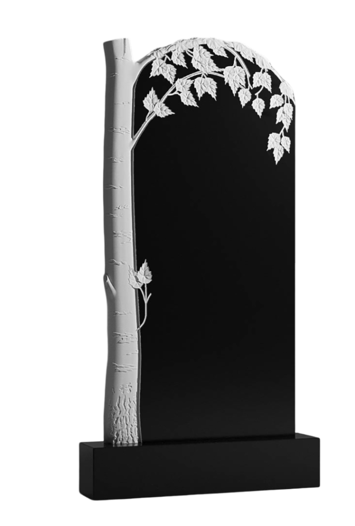 С одной стороны этого памятника расположен резной ствол дерева. Его ветвь изгибается и охватывает монумент сверху, создавая выразительный силуэт защиты и завершённости. Ствол символизирует прочную основу, жизненную силу и корни памяти, а ветвь — укрытие, рост и переход в вечность. Этот приём формирует целостный и гармоничный образ, в котором природа и памятник становятся единым целым. Детальная резьба передаёт фактуру коры и листьев, демонстрируя высокое качество работы. Памятник создаёт пространство для умиротворённого созерцания, где можно почтить ушедшего, размышляя о непрерывности бытия, силе рода и покое, обретённом под сенью этой каменной ветви. Это выбор для тех, кто ценит в мемориале естественную образность, скульптурную выразительность и глубину символики.