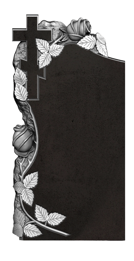 Этот вертикальный памятник ведёт тихий диалог через символы: роза у основания напоминает о корнях любви и земной близости; вторая роза выше говорит о том, как память возносится над суетой, храня светлый образ; а крест в вершине угла указывает на конечное упокоение и надежду, что примиряет с разлукой. Их расположение — словно ступени, по которым душа поднимается от скорби к утешению, от боли утраты к тихому приятию вечности. Лаконичность формы позволяет сосредоточиться на главном: на любви, что остаётся, на вере, что поддерживает, и на памяти, которая никогда не гаснет. Этот монумент — место для размышления и внутреннего мира, где можно почувствовать, что связь с дорогим человеком не прервана, а лишь обрела новое, тихое измерение.