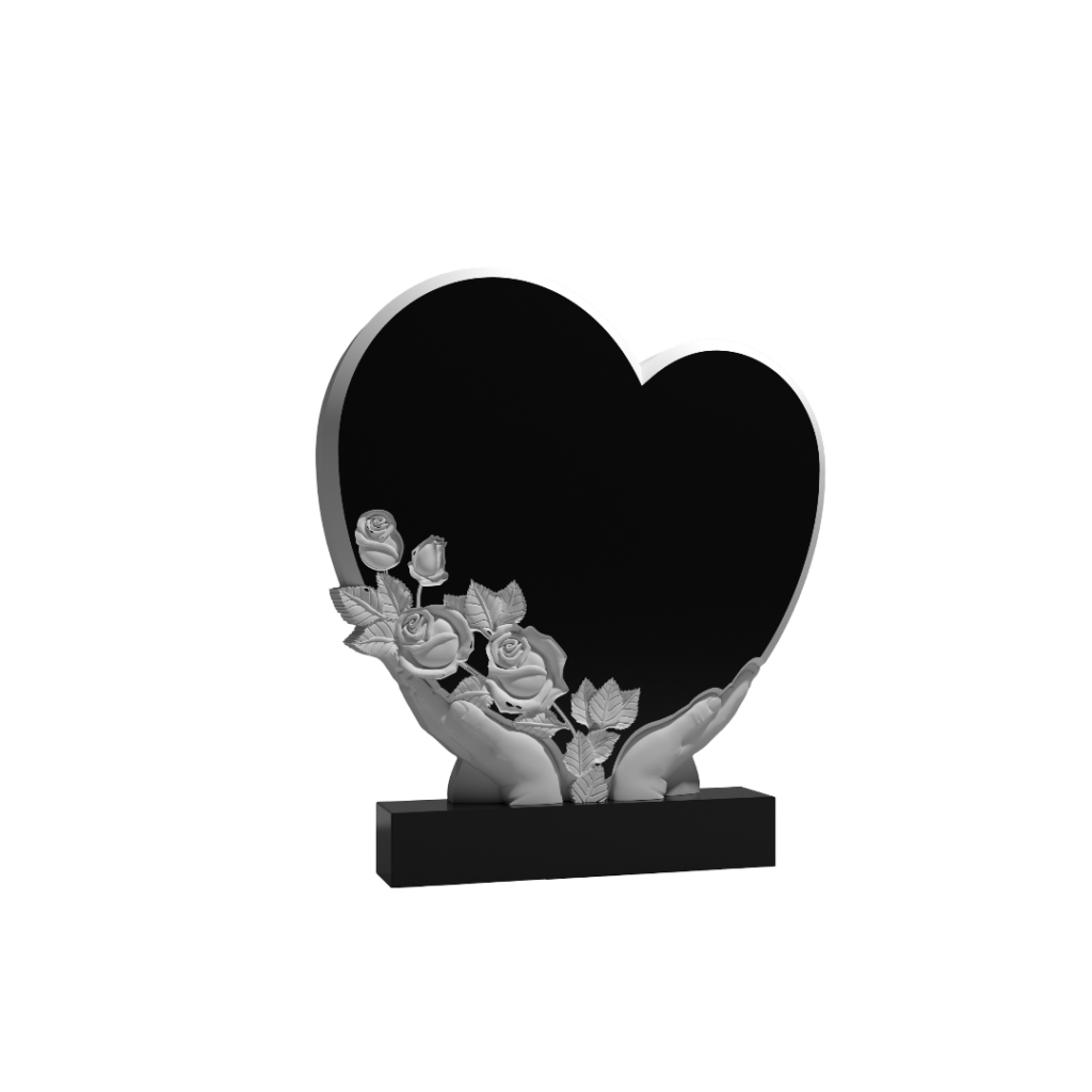Этот памятник выполнен в форме сердца, которое у основания бережно поддерживают резные руки. Сердце украшено резными розами, символизирующими любовь, память и нежность. Руки, олицетворяющие заботу, защиту или последнее прикосновение, создают трогательный образ поддержки и сохранения самого сокровенного чувства. Композиция передаёт идею, что любовь к ушедшему не остаётся без опоры — она бережно хранится, как драгоценность. Детализация резьбы подчёркивает пластику рук, изящество роз и цельность формы, демонстрируя высокое художественное мастерство. Памятник создаёт пространство для глубоко личного, эмоционального воспоминания, где можно почтить близкого, чувствуя, что ваша любовь к нему надёжно удержана в этом каменном воплощении. Это выбор для тех, кто ищет в мемориале сочетание сильной метафоры, эмоциональной насыщенности и виртуозного исполнения.