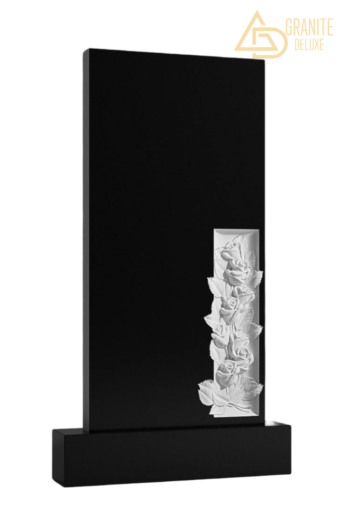 Этот лаконичный вертикальный памятник выполнен в строгой, сдержанной форме. В его нижнем углу расположено несколько резных бутонов роз. Эти нераскрывшиеся цветы символизируют нежную память, чистоту чувств и ту любовь, которая осталась невысказанной или оборвалась слишком рано. Их скромное присутствие у основания создаёт тонкий, но выразительный акцент, направляя мысль к тихому истоку воспоминаний. Простота памятника позволяет этому символу звучать особенно ясно, без лишних деталей. Он создаёт пространство для личного, задумчивого прощания, где можно почтить ушедшего с лёгкой грустью и признанием того, что даже самое малое проявление любви имеет вечную ценность.