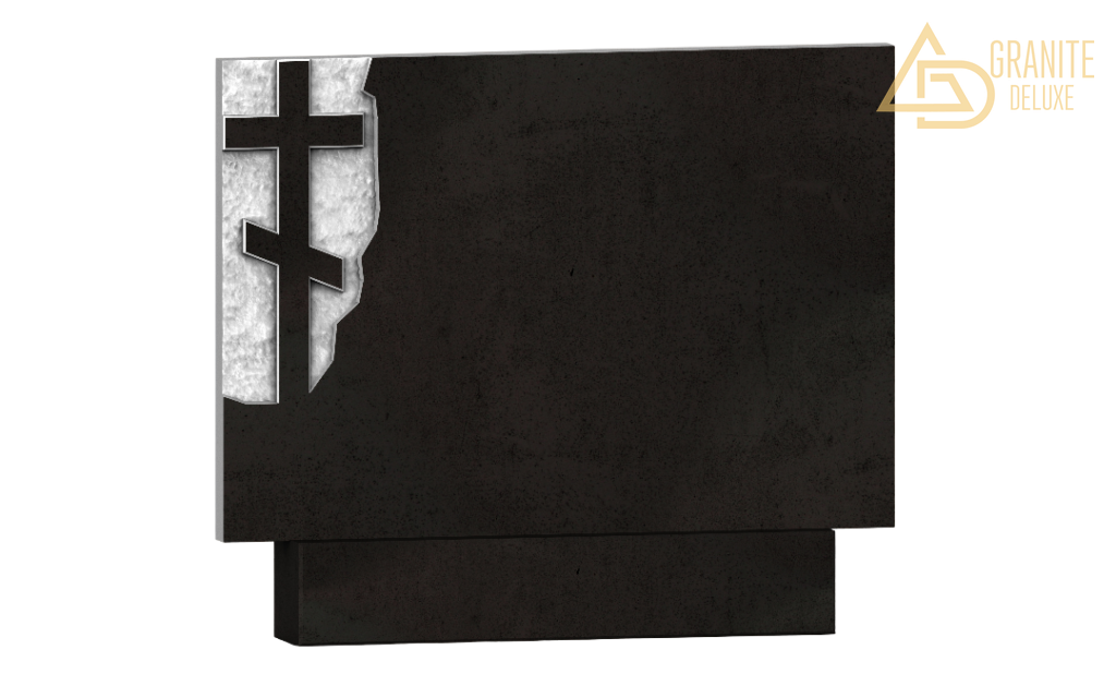 Этот горизонтальный памятник имеет лаконичную, спокойную форму. В одном из его углов расположен крест, помещённый в небольшое углубление, что создаёт ощущение сокровенности и личного обращения. Крест остаётся ясным знаком веры, надежды и вечного упокоения, а его расположение в углублении добавляет композиции глубины и сосредоточенности. Простота общего вида памятника позволяет не отвлекаться от главного — памяти об ушедшем человеке и мыслей о нём. Монумент создаёт тихое, интимное пространство для размышления, где можно почтить близкого, признать боль утраты и найти утешение в вере, выраженной скромно, но выразительно.
